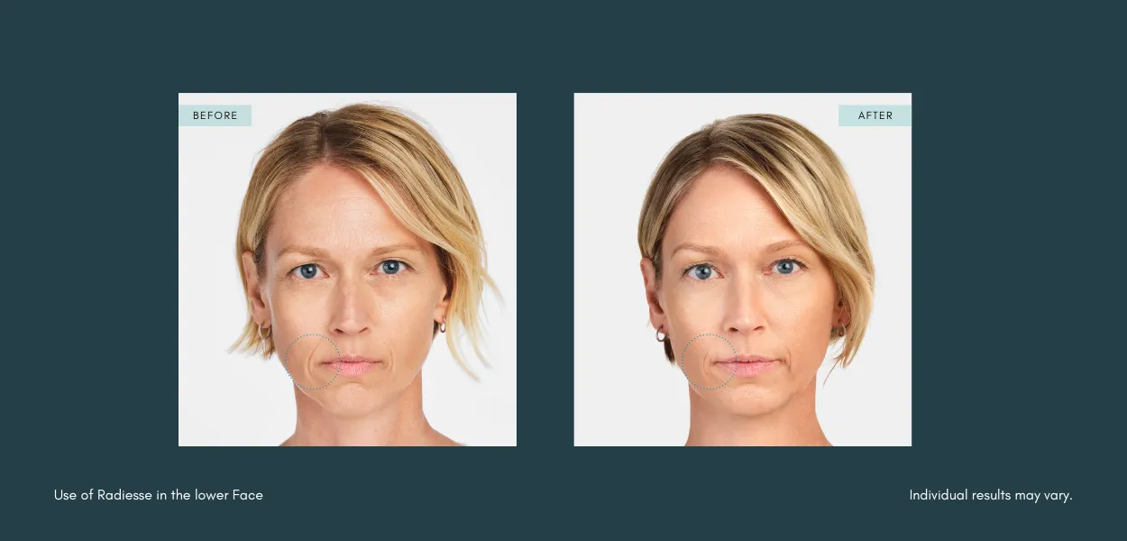 Skin changes as you get older, and that's no surprise! Collagen and elastin help keep wrinkles away, but aging and sun damage slow their production. Radiesse, a dermal filler composed of calcium hydroxylapatite (CaHA) microspheres suspended in a gel carrier, offers a unique dual-action approach to facial rejuvenation: immediate volume restoration and long-term biostimulation of collagen and elastin.