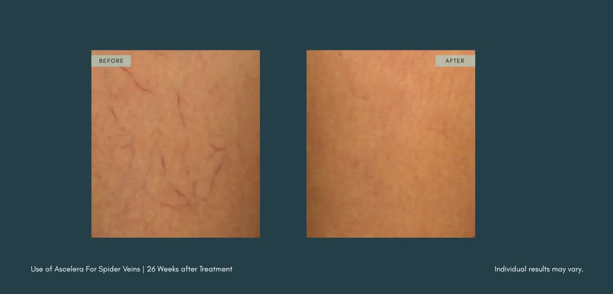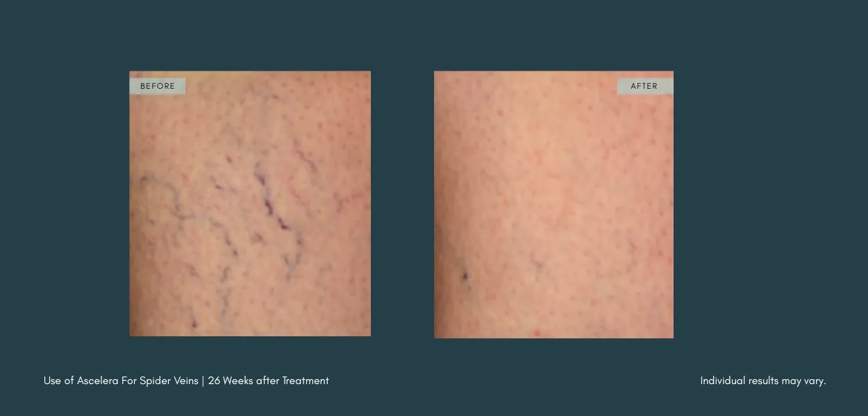 Sclerotherapy is a minimally invasive procedure done by your cosmetic provider to treat uncomplicated varicose and spider veins. The treatment involves the injection of Asclera into the affected veins.